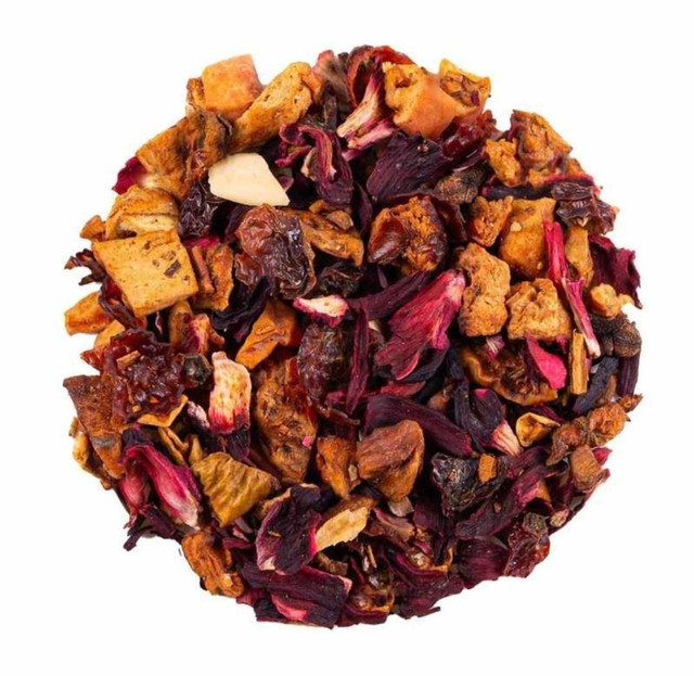 Ingredienti: Mela, ibisco, Rooibos Super Grade, cinorrodo, bastoncini di cannella, pezzi di cannella, MANDORLA, aroma naturale, chiodi di garofano.