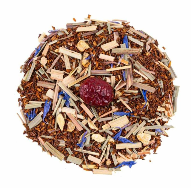 Ingredienti: Rooibos naturale, citronella, zenzero (9%), aroma naturale, mirtilli rossi (2%), fiordaliso.